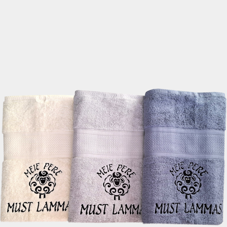 Lõbusa musta lamba tikandiga rätik. Selline rätik on hea huumorisoonega inimesele tore ja praktiline kingitus.