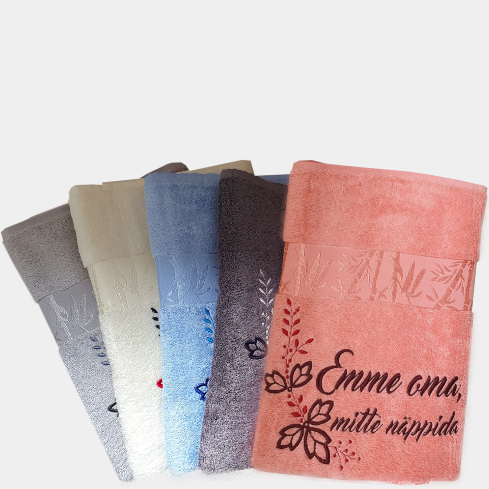 Luksuslikult pehme lillornamendiga bambusviskoosist vannirätik. Kellele rätik kuulub, et teised seda ei näpiks, vali allpool olevast loendist.