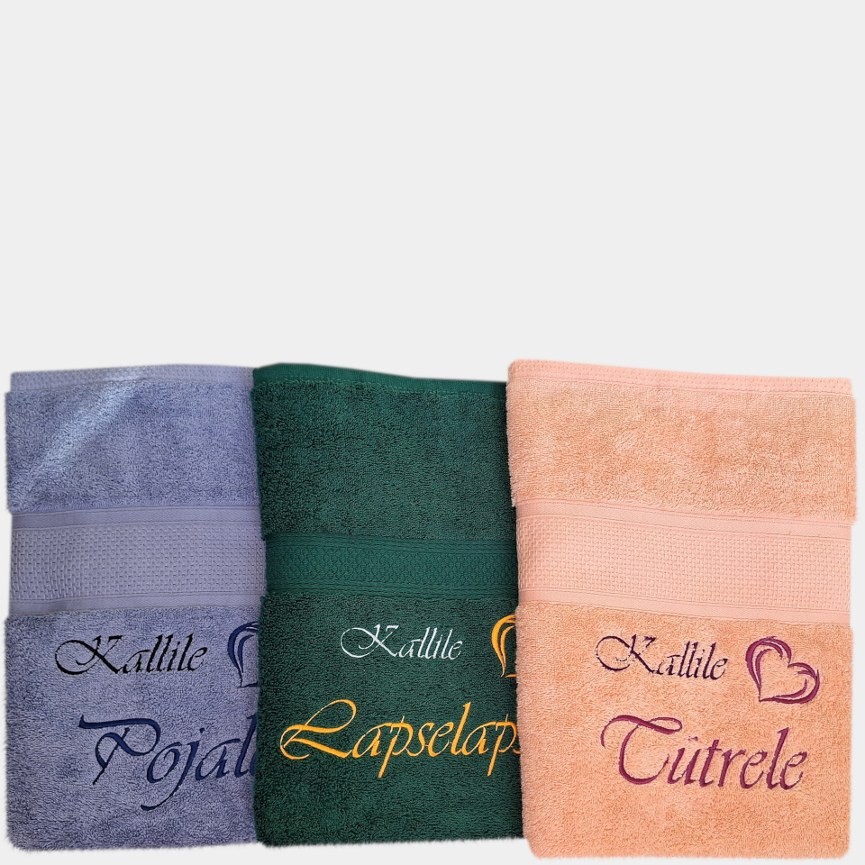 Rätile tikitakse sõna “Kallile” ja süda. Kes on see kallis, kellele rätik läheb, vali allpool olevast loendist.